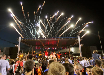 (Left) D*Funk plays while fireworks go off at Opening Ceremonies. Photo courtesy: All-Sports Photography.