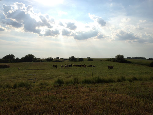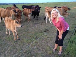 Photos: (left) posing with the cows on the farm, (right) cows in the sunset.
