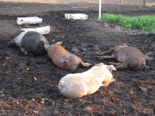Photos: pigs eating and relaxing on the farm in the cool mud.