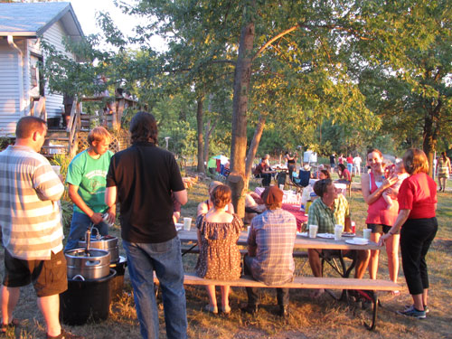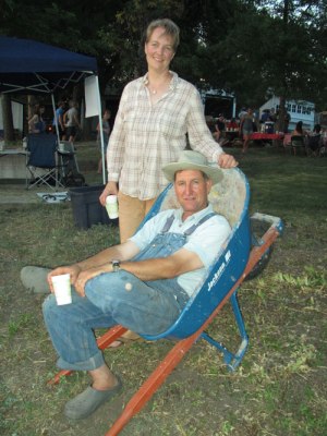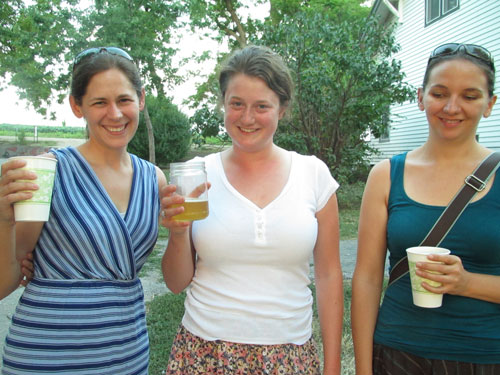 Photos: (left) crowd at hog roast party, (right) nice ladies posing with my new favorite Modern Monks beer.
