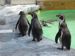 We ventured off to visit the Humboldt Penguins. These penguins have been at the Zoo for about two years now. It’s really fun to watch them do their feeding routine with the zookeepers. These birds are full of personality. They steal fish from their friends, come close to the audience to get more claps, and dive into the pool when they’re full from their feast.