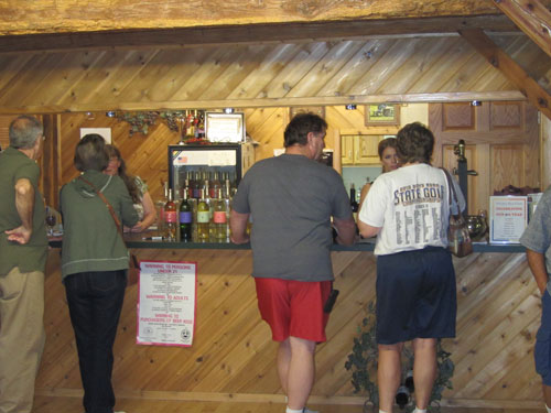 Photos: Left, downstairs and upstairs in the barn. About 60 people can sit upstairs. Above, visitors tasting wines.