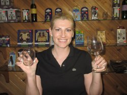 Photos: Above, the tastings include 18 different wines and for $3 you can choose five. For $3 more you can keep the glass. Right, we bought the dry red wine, 1854, and also the dry white wine, Robert’s Back 40. Both were delicious and they didn’t last very long.